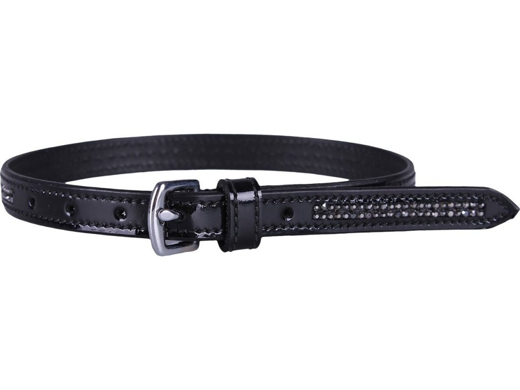 Paski do ostróg wykonane z wysokiej jakości skóry. Ozdobione dwoma rzędami błyszczących kamieni, aby rozjaśnić ogólny wygląd. Zapięcie ze srebrną klamrą ze stali nierdzewnej. Dostępne w rozmiarach dla dorosłych 46 cm i dla juniorów 38 cm. Dostarczane w parach.
