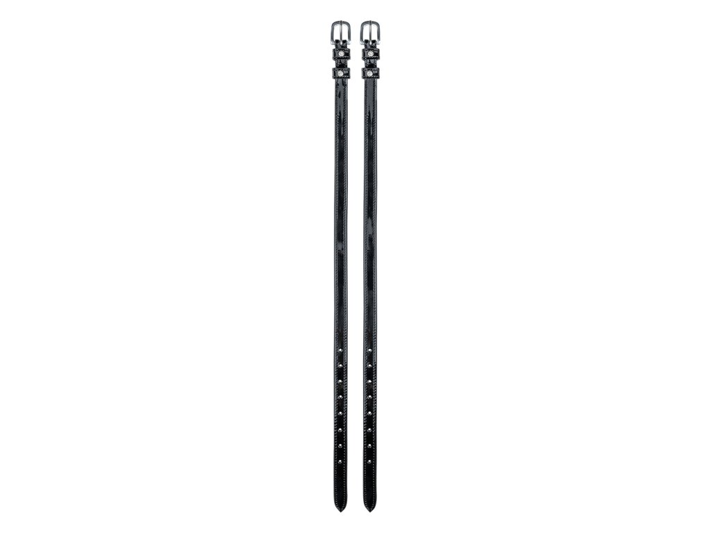 Eleganckie skórzane paski do ostróg. Ozdobione subtelnymi dżetami na szlufkach. Wyposażone w srebrne okucia. Ze względu na ich elegancki wygląd, nadają się również na zawody. Ich rozmiar można dopasować. Dostarczane w parze.