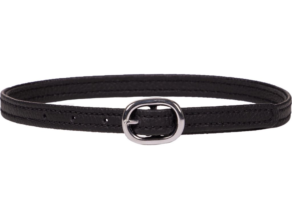 Paski do ostróg wykonane ze skóry syntetycznej z owalną klamrą. Elastyczny materiał ułatwiający mocowanie.