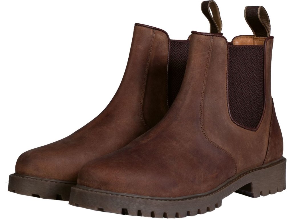 Wysokiej jakości sztyblety wykonane z wysokiej jakości skóry. Łatwe do założenia dzięki elastycznym wstawkom bocznym i materiałowej pętelce z tyłu buta. Wyposażone w antypoślizgową podeszwę syntetyczną. Dostępne w kolorze ciemnobrązowym i rozmiarach 40–46.