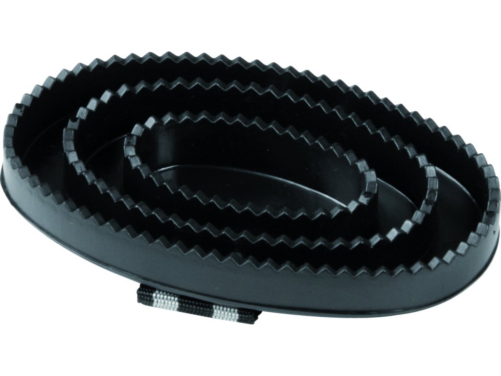 Solidne plastikowe zgrzebło z tekstylną pętlą dla lepszego chwytu. Długość 16,5 cm