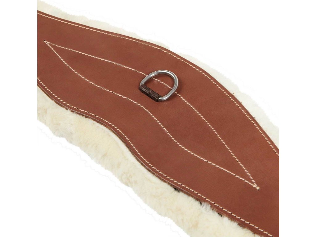 Wysokiej jakości popręg, wykonany z bardzo wytrzymałej skóry. Wyposażony w elastyczne wstawki po obu stronach dla maksymalnego komfortu i elastyczności. Imitacja futra jagnięcego zapobiega otarciom i można go odpiąć w celu łatwego czyszczenia i prania. Popręg jest wyposażony w D-ring pośrodku i po obu stronach. Klamry wykonane są ze stali nierdzewnej. Odpowiedni dla koni i kucyków. Dostępne w wielu kolorach. Produkowany w rozmiarach 100–150 cm.