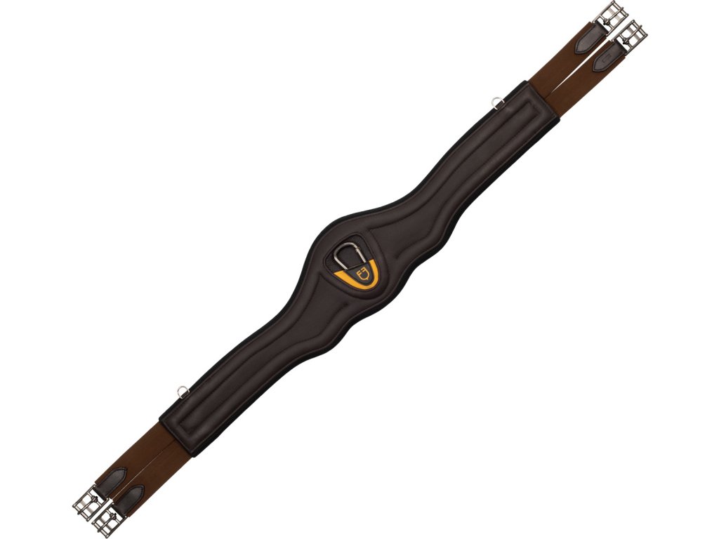 Anatomicznie zaprojektowany popręg wykonany z wysokiej jakości skóry. Wygodne i praktyczne paski elastyczne po bokach zapewniają maksymalną elastyczność i komfort. Wyposażone w klamry ze stali nierdzewnej. Wnętrze wykonane jest z neoprenu, aby zapobiec bezpośredniemu tarciu o skórę konia. Wyposażony w karabińczyk do mocowania napierśnika.