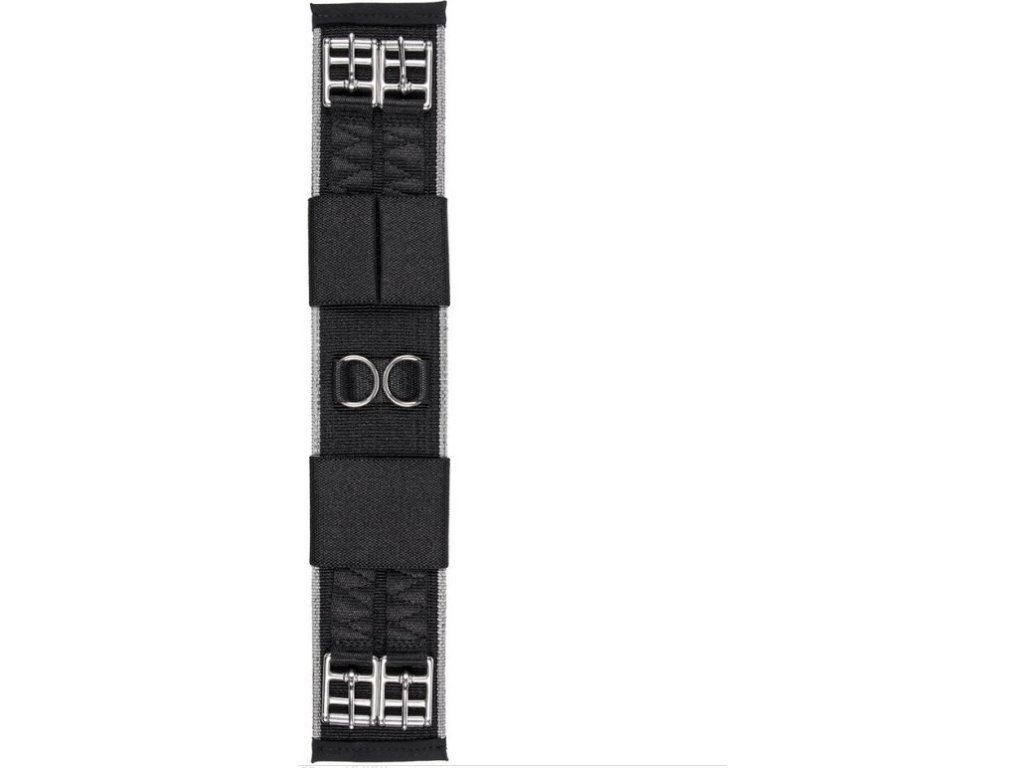 Popręg ujeżdżeniowy, który zapewnia koniowi maksymalną swobodę ruchów, jednocześnie utrzymując siodło na miejscu. Główną cechą tego popręgu jest jego elastyczność na całej długości, która rozprowadza nacisk, nie dusi konia i rozszerza się zgodnie z jego oddechem. Popręg wykonany jest z wysokiej jakości włókien elastycznych – poliamidu 6, które są trwałe i elastyczne. Dzięki temu popręg jest miękki i wygodny dla koni. Wszystkie okucia są w kolorze srebrnym.