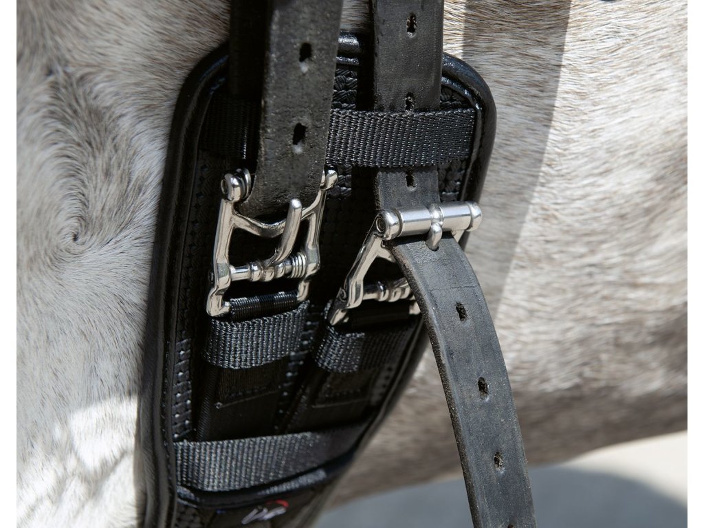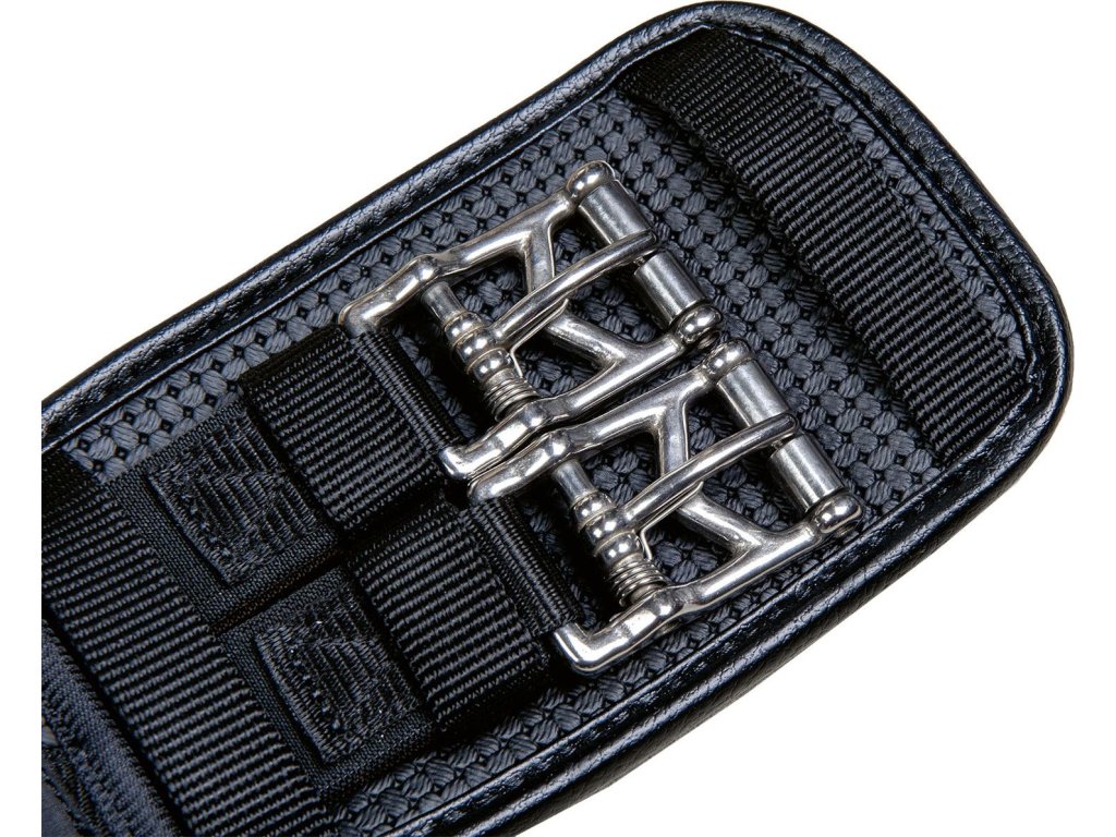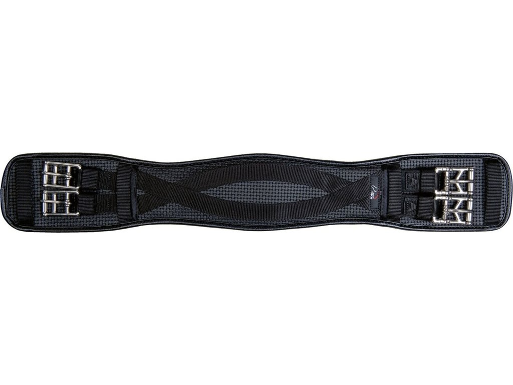 Popręg ujeżdżeniowy wykonany z miękkiego materiału PVC.. Dzięki anatomicznemu kształtowi idealnie pasuje. Doskonale rozkłada nacisk. Wyposażony w gumę z jednej strony. Dostępny w kolorze czarnym i wielu rozmiarach.