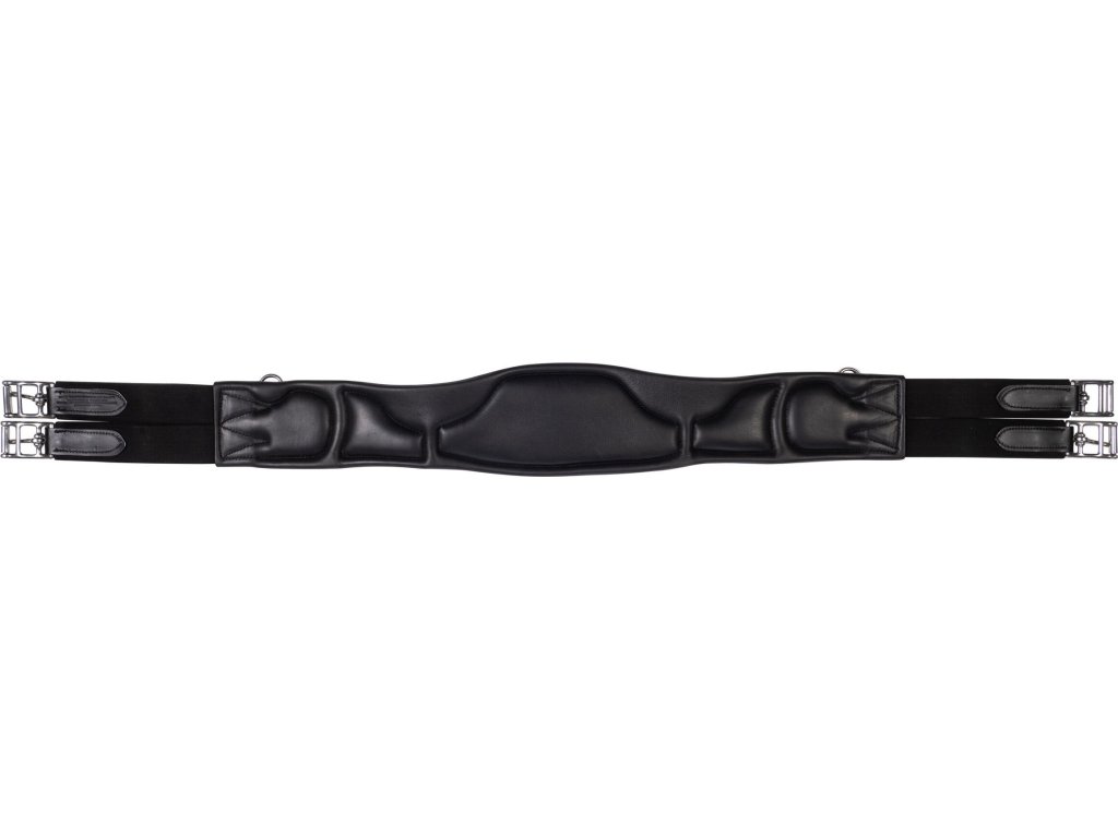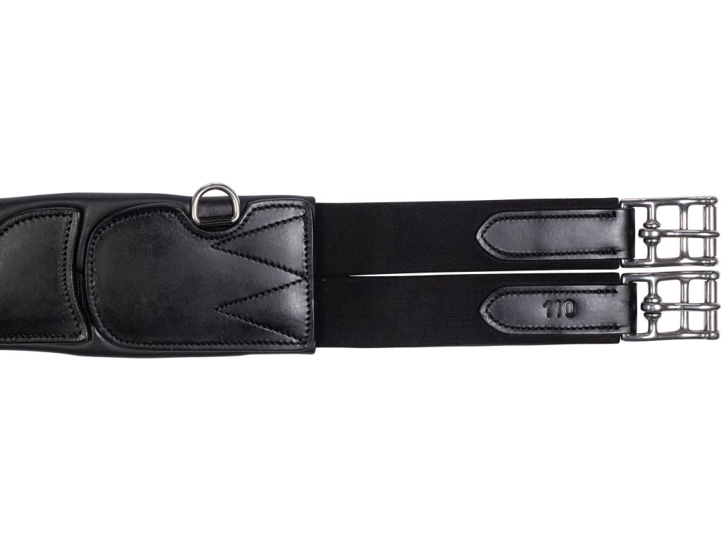 Popręg wykonany z wyjątkowo miękkiej i wysokiej jakości skóry. Wyposażony w elastyczne końce po obu stronach. Anatomicznie ukształtowany dla idealnego dopasowania, doskonale rozkłada nacisk i zapewnia swobodę łokciom. Okucia wykonane są ze stali nierdzewnej. Wyposażony w D-ringi do mocowania innych narzędzi.