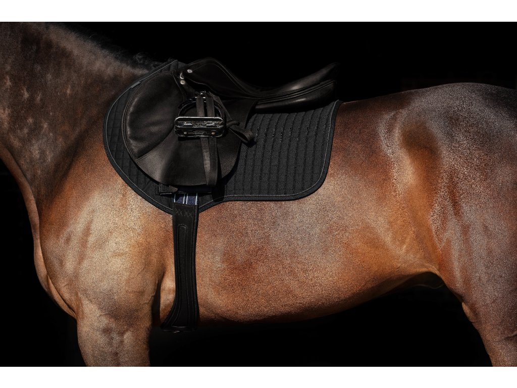 Bardzo wysokiej jakości skórzany i miękko wyściełany popręg z elastycznymi końcami po obu stronach. Popręg został zaprojektowany w specjalnym kształcie, z jedną stroną dłuższą, a drugą krótszą - popręg jest lekko zakrzywiony. Ten typ popręgu jest odpowiedni dla koni, których klatka piersiowa rozszerza się ku tyłowi. Popręg leży na koniu krótszą stroną do przodu, a dłuższą do tyłu. Posiada lekkie wycięcie za łokciami zapewniające swobodę ruchu oraz poszerzenie na mostku dla lepszego rozłożenia nacisku. Rozmiar: 110, 120, 130, 140 cm.