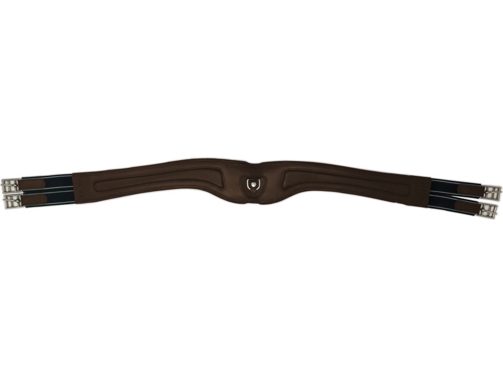Bardzo wysokiej jakości skórzany i miękko wyściełany popręg z elastycznymi końcami po obu stronach. Popręg został zaprojektowany w specjalnym kształcie, z jedną stroną dłuższą, a drugą krótszą - popręg jest lekko zakrzywiony. Ten typ popręgu jest odpowiedni dla koni, których klatka piersiowa rozszerza się ku tyłowi. Popręg leży na koniu krótszą stroną do przodu, a dłuższą do tyłu. Posiada lekkie wycięcie za łokciami zapewniające swobodę ruchu oraz poszerzenie na mostku dla lepszego rozłożenia nacisku. Rozmiar: 110, 120, 130, 140 cm.