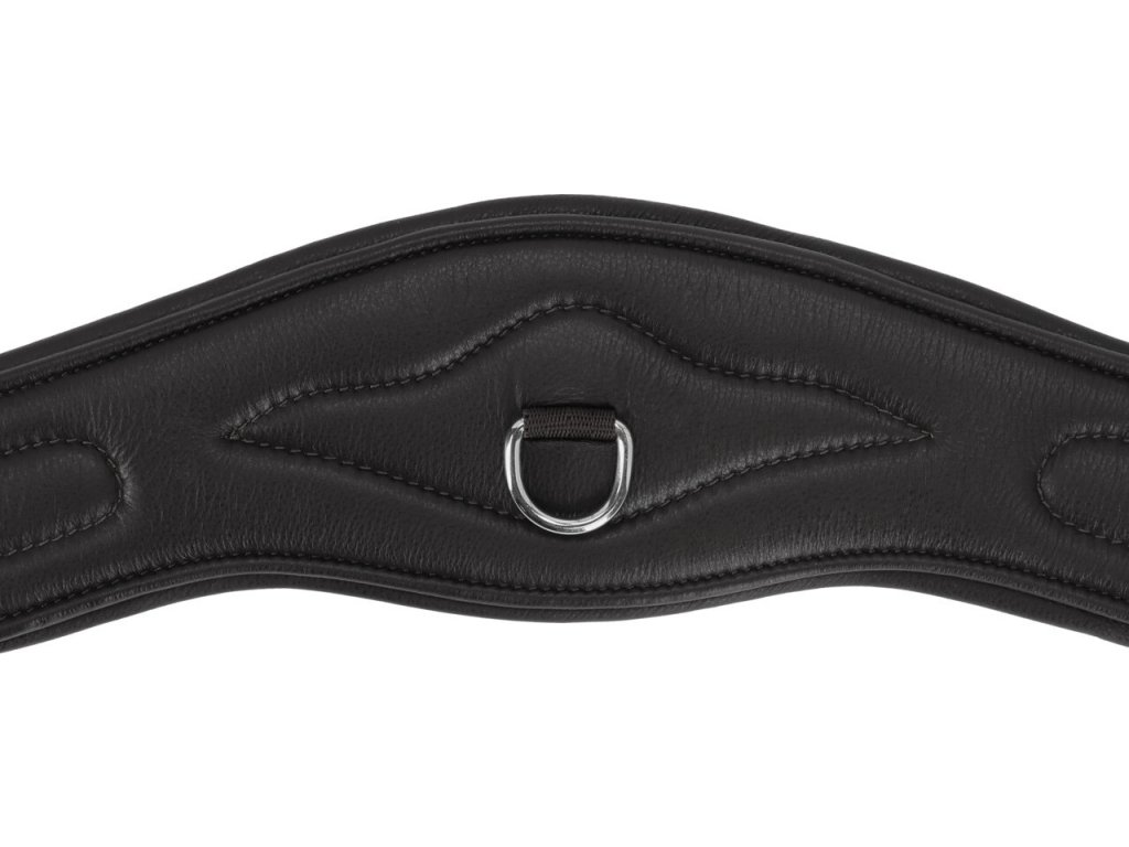 Anatomicznie ukształtowany popręg wykonany z wysokiej jakości miękkiej skóry. Popręg zapewnia maksymalny komfort i swobodę ruchów dzięki anatomicznemu kształtowi i miękkiej skórzanej wyściółce. Jest wyposażony w elastyczne gumy po obu stronach, rolkowe sprzączki i trzy pierścienie do mocowania pomocy treningowych.
