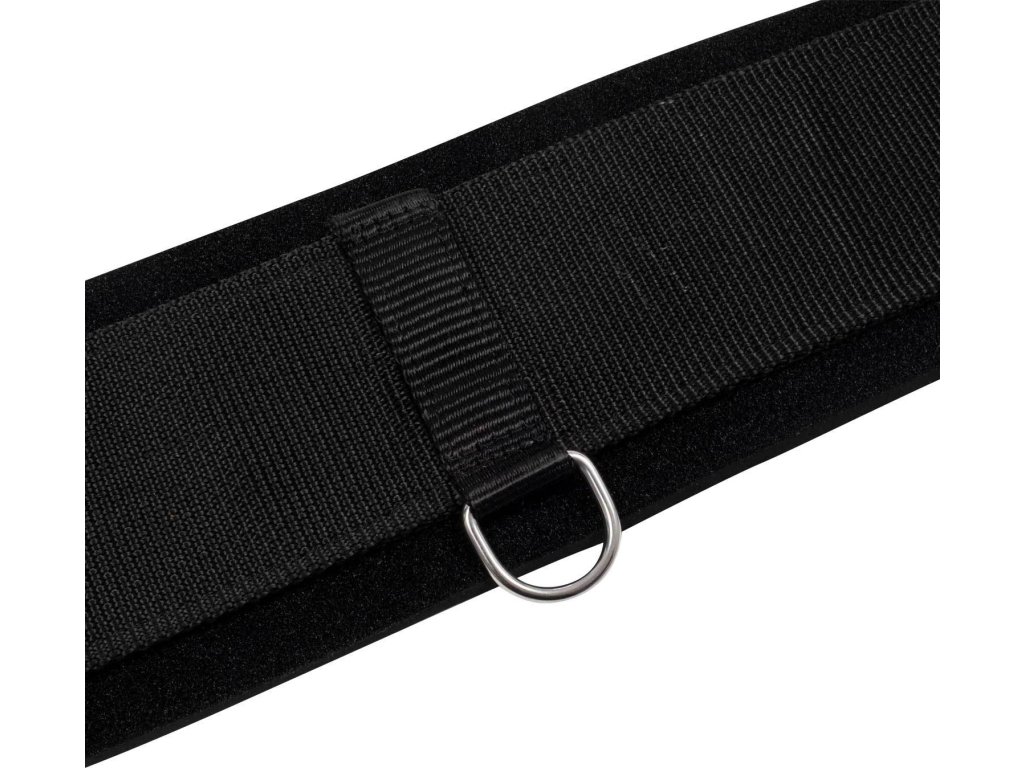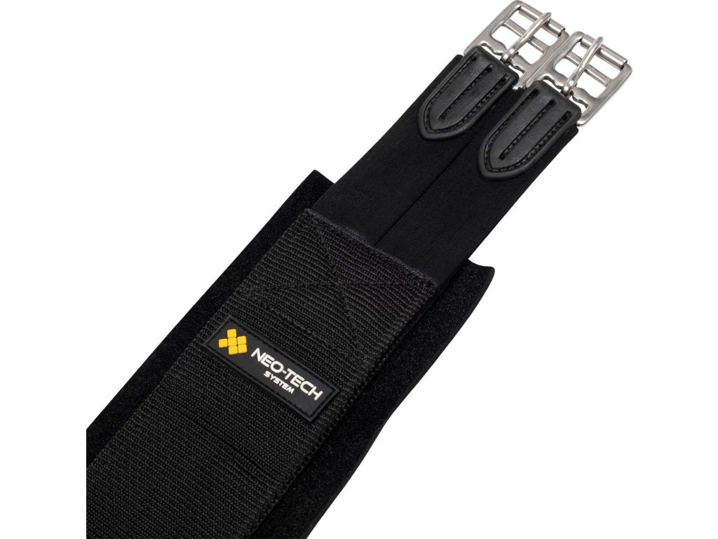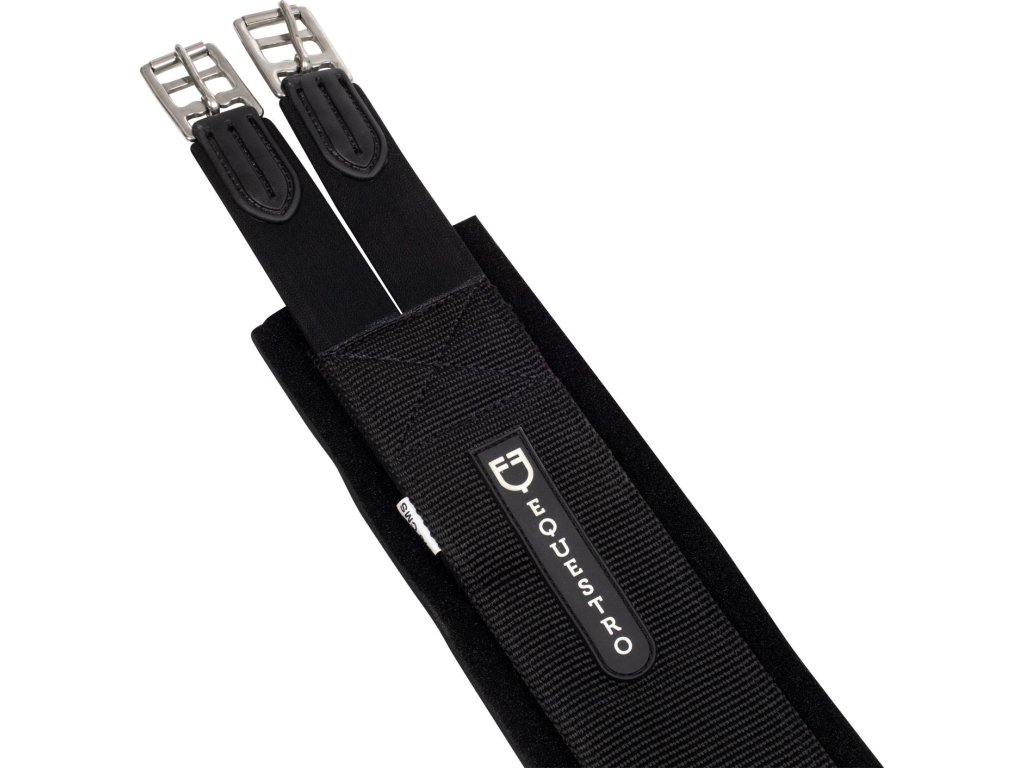 Popręg skokowy wykonany z nylonu z odpinaną wyściółką neoprenową. Wysoce oddychający, pozwala na ucieczkę ciepła i wilgoci oraz utrzymuje konia w suchości. Wyposażony w elastyczne końce po obu stronach. Rozkłada nacisk i zapobiega możliwym podrażnieniom skóry. Klamry ze stali nierdzewnej zapewniają dodatkową trwałość i długą żywotność. Ozdobiony logo Equestro. Dostępne w kolorze czarnym. W rozmiarach od 90 cm do 150 cm.