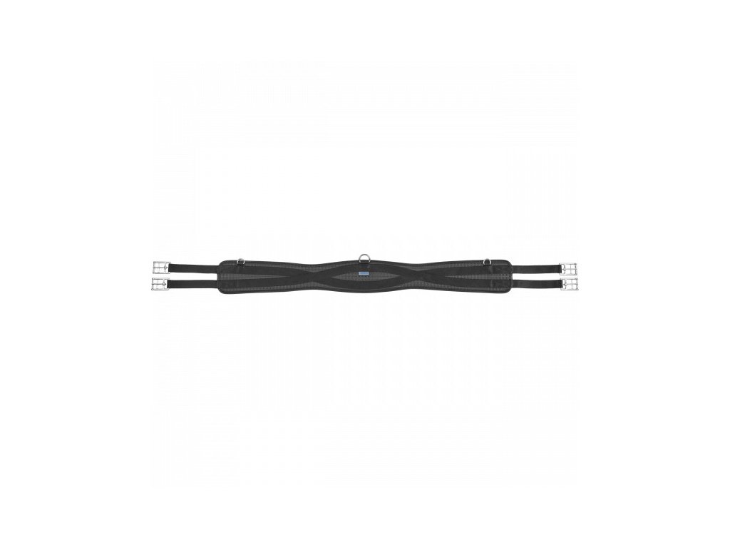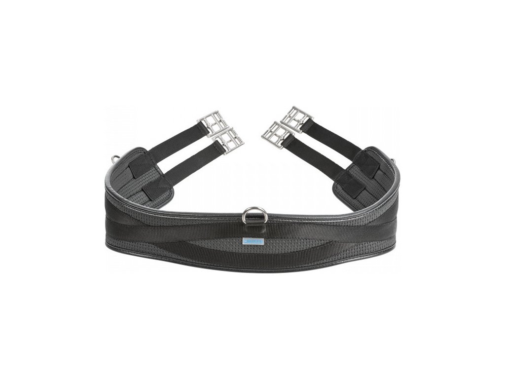 Długi, anatomicznie ukształtowany popręg. Zwężony w okolicy łokcia dla maksymalnej swobody ruchów, ale poza tym wystarczająco szeroki dla optymalnego rozłożenia nacisku. Wykonany z materiału winylowego, łatwy w utrzymaniu czystości. Duży D-ring pośrodku i małe D-ringi po bokach. Nylonowe paski po obu stronach do mocowania do siodła. Klamry ze stali nierdzewnej.