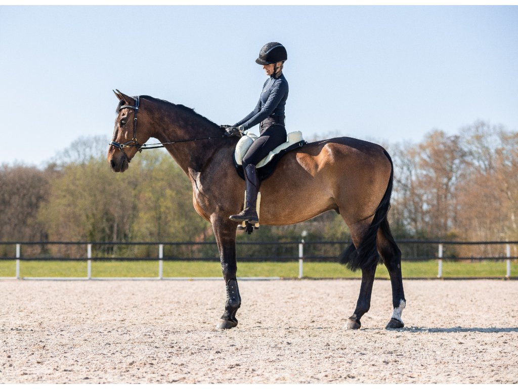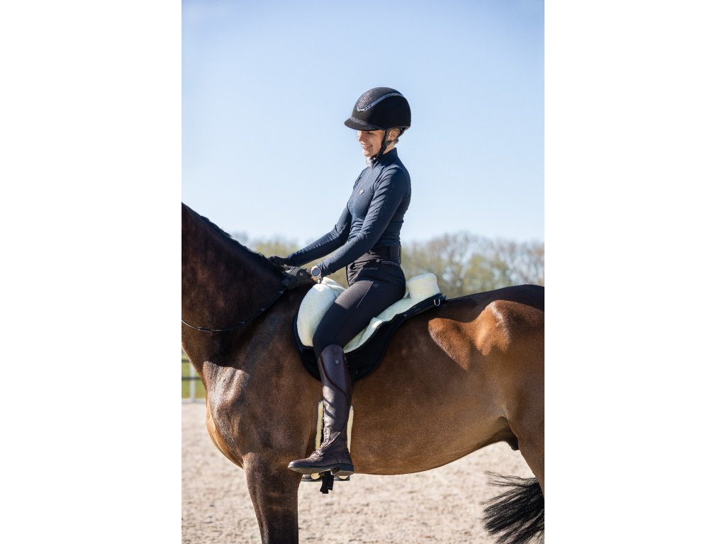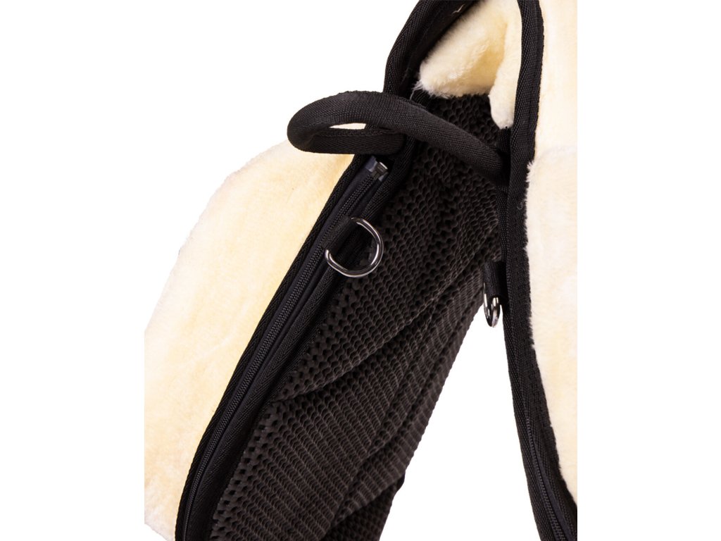 Bardzo wysokiej jakości podkładka jeździecka z miękkim sztucznym futrem. Sztuczna skóra jagnięca jest łatwo odpinana za pomocą zamka błyskawicznego. Anatomiczny kształt podkładki zapewnia maksymalny komfort i zapobiega otarciom w okolicy kłębu. Posiada antypoślizgową warstwę spodnią, która zapewnia, że podkładka pozostaje na swoim miejscu podczas jazdy. Zapewnia jeźdźcowi maksymalny komfort, stabilność oraz wsparcie kolan, które wspomagają pozycję jeźdźca. Posiada pętlę do trzymania, D-ringi z tyłu do mocowania toreb oraz D-ringi z przodu do mocowania napierśnika.