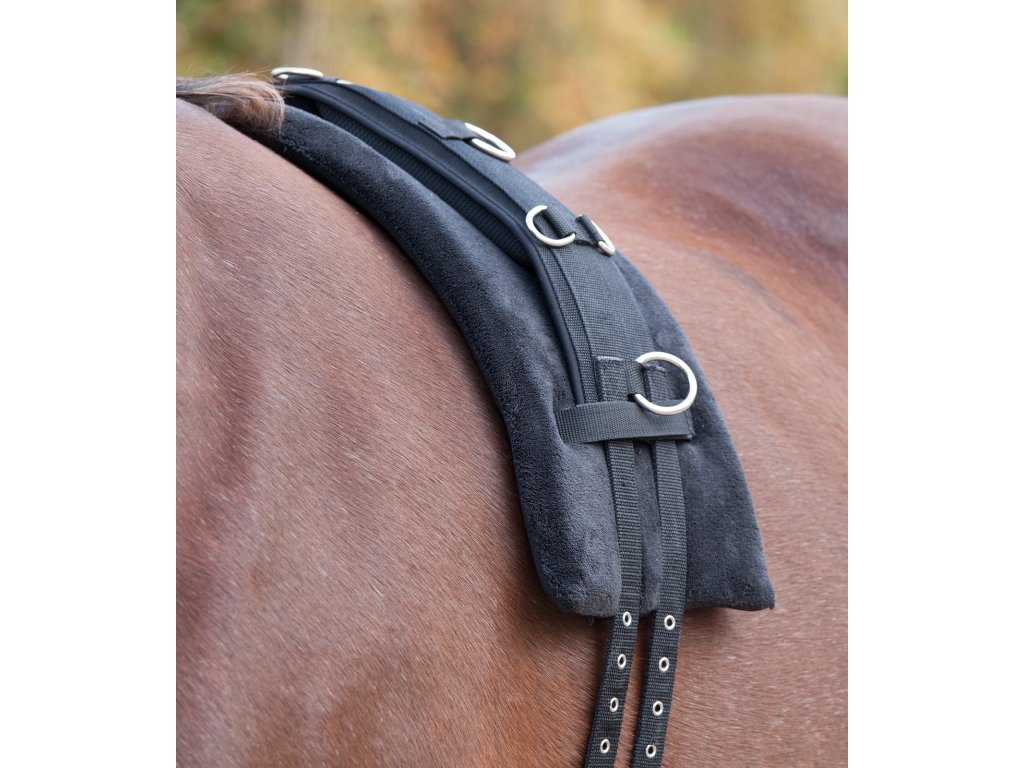 Podkładka z miękkiej pianki memory, która optymalnie dopasowuje się do grzbietu konia. Zapięcie na rzep zapobiega ześlizgiwaniu się pasa. Rozmiar: FULL 110 x 24 cm, PONY 80 x 21 cm.