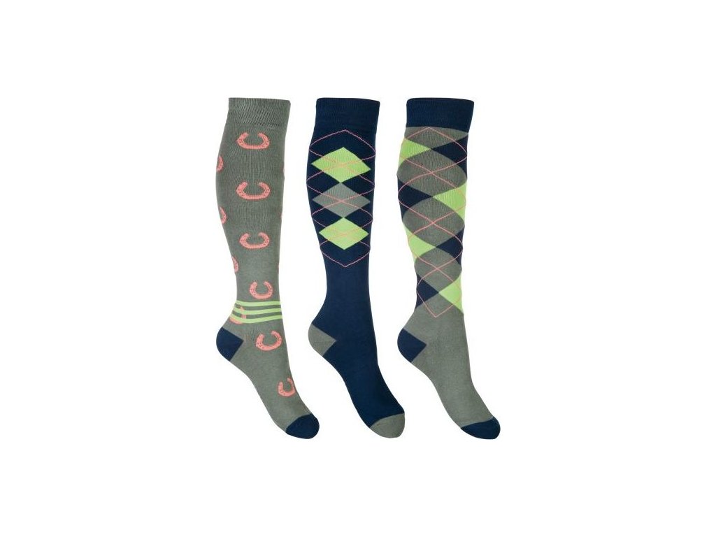 Podkolanówki jeździeckie Cardiff HKM, 3 pary, navy/olive