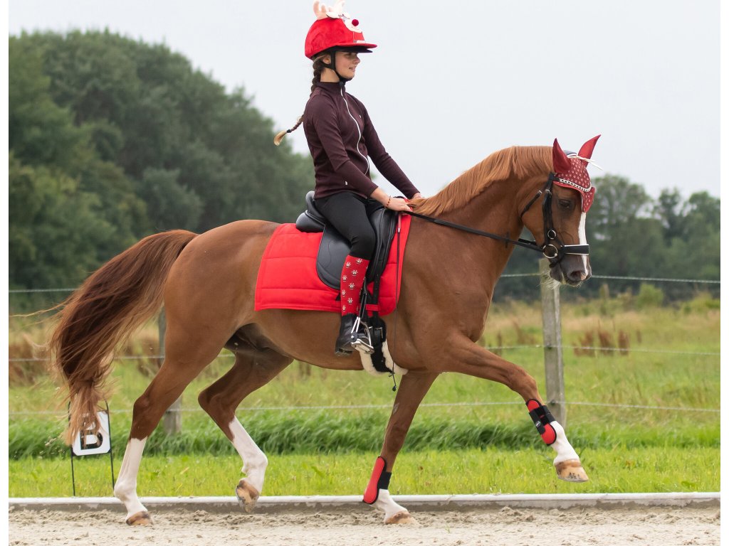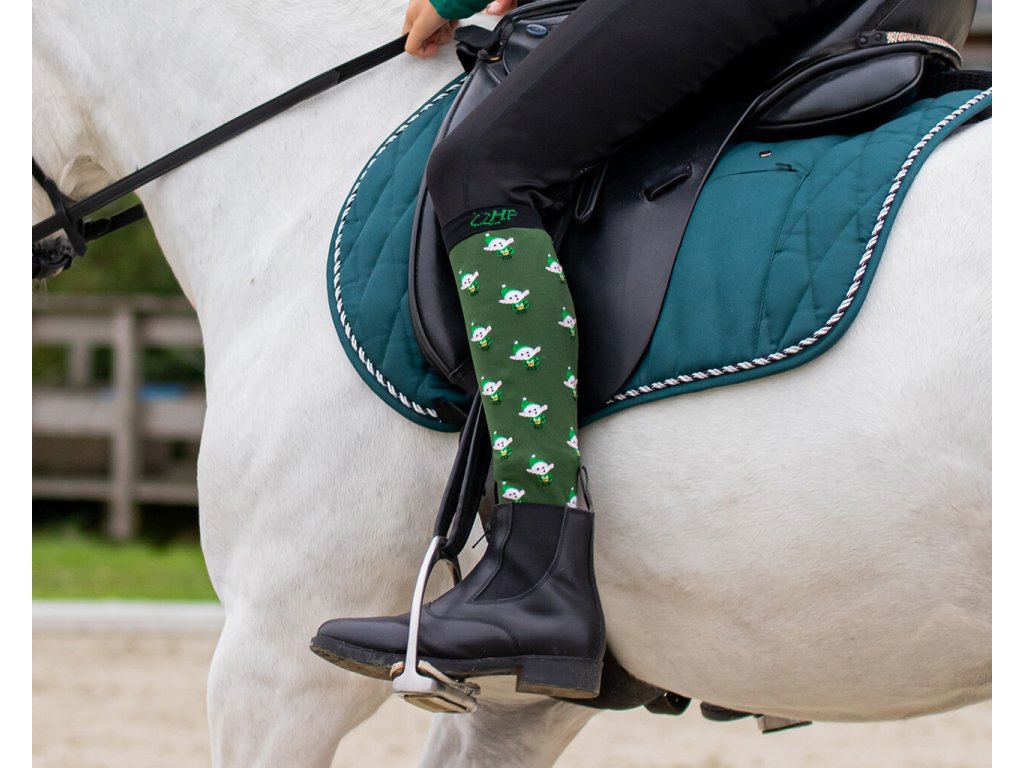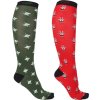 Zestaw dwóch par podkolanówek jeździeckich ze świątecznymi motywami. Wykonane są z elastycznej tkaniny, która zapewnia maksymalny komfort noszenia.