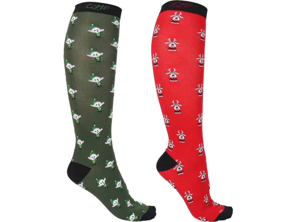 Podkolanówki jeździeckie QHP, 2 pary, elf/rudolph