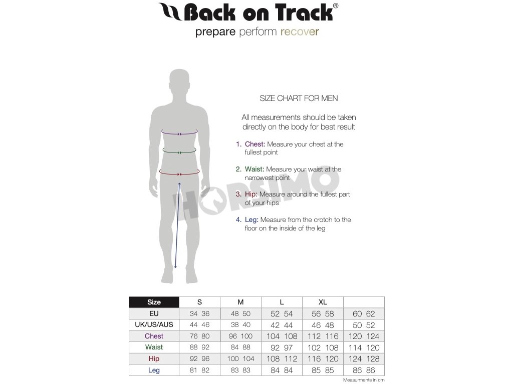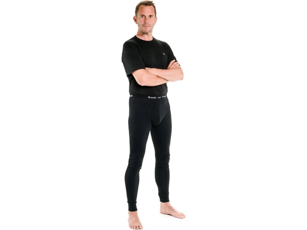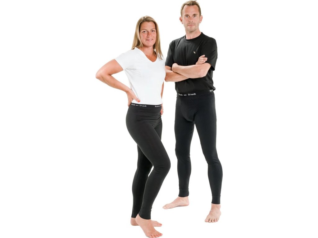 Długie getry męskie Johns firmy Back on Track przynoszą ulgę w problemach z pachwinami, powierzchownych bólach bioder oraz problemach z pęcherzem lub prostatą spowodowanych zimnem. Wykonane z wygodnej mieszanki poliestru i bawełny, posiadają podwójną warstwę materiału i dodatkową przestrzeń z przodu. Posiadają jednak kryty rozporek, dzięki czemu nadają się również dla kobiet. Materiał jest dość elastyczny, co oznacza, że spodnie mniej wymagają pod względem prawidłowego doboru rozmiaru. Materiał został wzbogacony o technologię Welltex®, która wykorzystuje stopione cząsteczki ceramiczne odbijające ciepło ciała w postaci promieniowania podczerwonego. Technologia ta poprawia krążenie krwi i wspomaga regenerację. Dobre wyniki zaobserwowano szczególnie w przypadkach powierzchownych bólów mięśniowych w okolicy bioder (musculus tensor fasciae latae) podczas stosowania getrów bazowych. Pas wykonany jest z szerszych gumek z nadrukiem Back on Track.