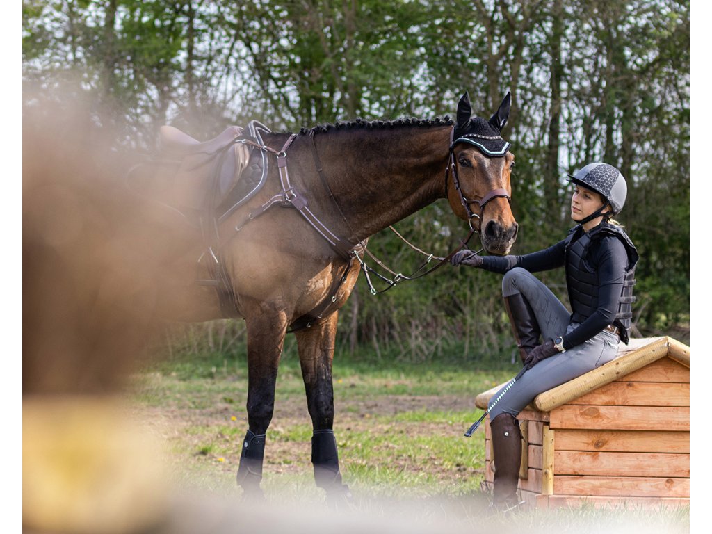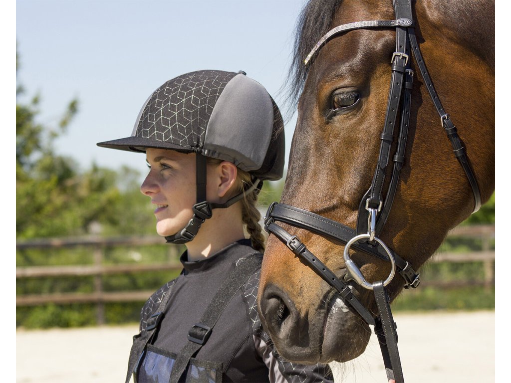 Pokrowiec na kask z daszkiem odpowiedni do WKKW, w wielu kolorach i o geometrycznym wzorze. Normalnie kaski do WKKW nie mają daszków, ponieważ jest to niebezpieczne w razie upadku. Ten jednak nie ogranicza niczego i jest całkowicie bezpieczny. Na górze pokrowca znajduje się guzik w kontrastowym kolorze. Uniwersalny rozmiar pasujący do każdego kasku, z daszkiem lub bez. Pasuje do innych produktów z kolekcji Q-Cross.