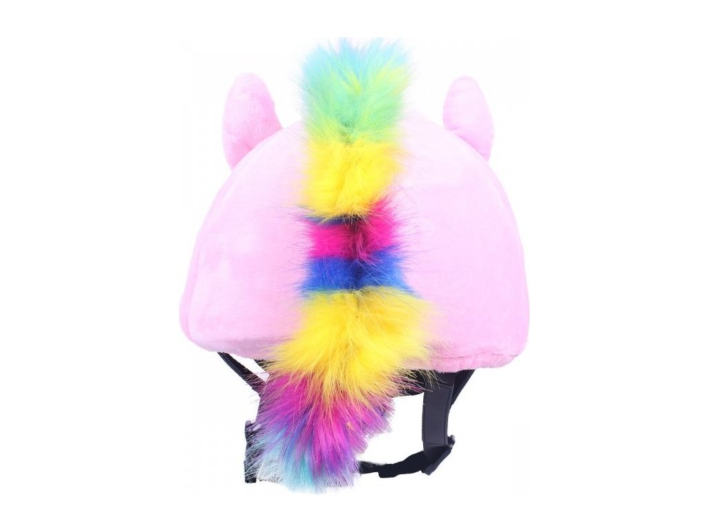 Zabawny, kolorowy pokrowiec na kask, który wygląda jak jednorożec. Dzięki elastycznym brzegom pozostaje na swoim miejscu i pasuje do każdego kasku ochronnego.