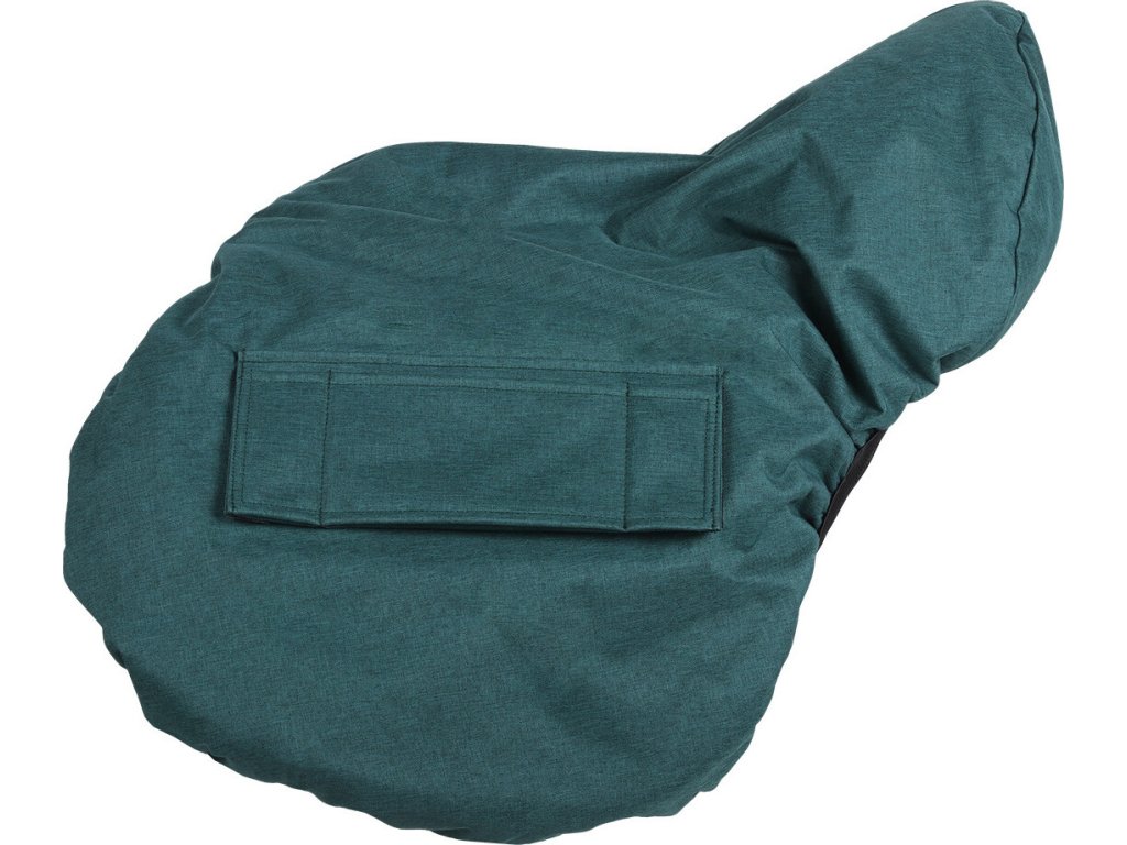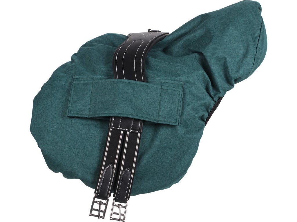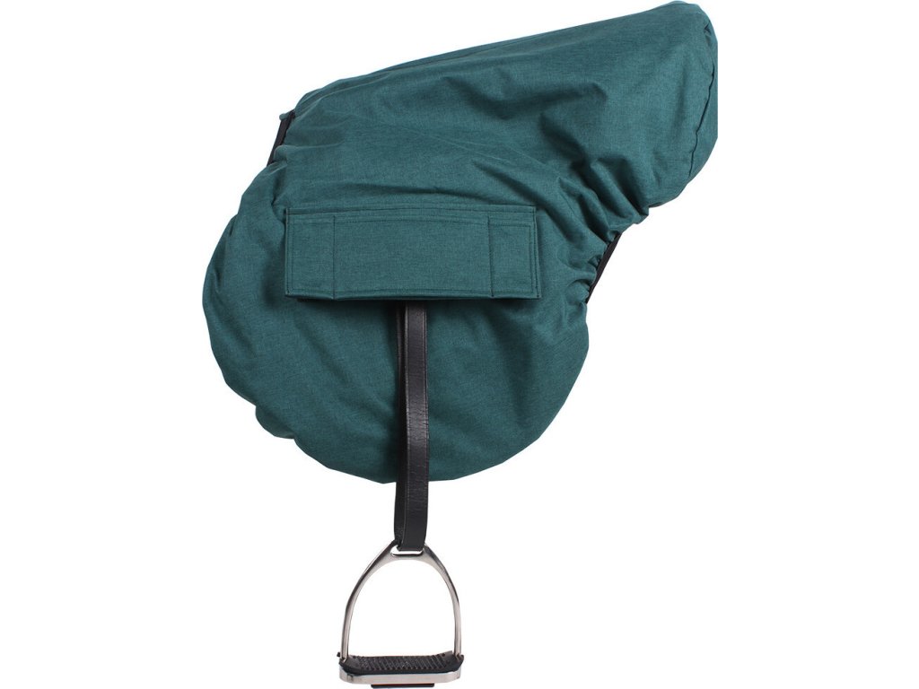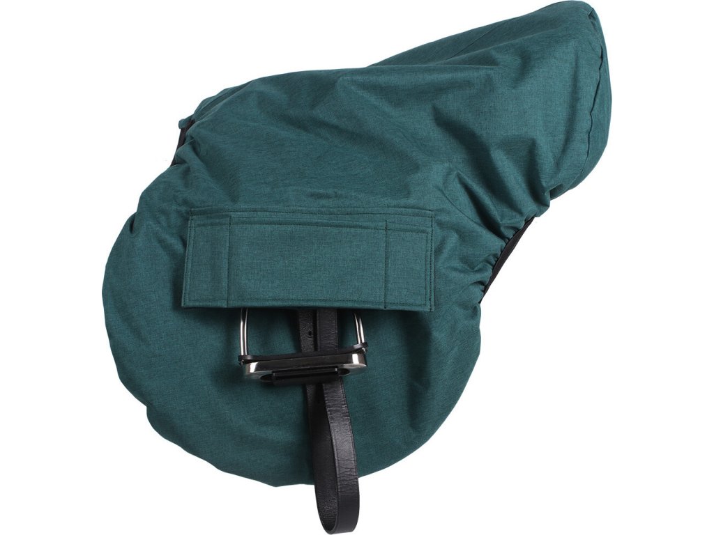 Pokrowiec na siodło wykonany z materiału wodoodpornego z podszewką z polaru. Pokrowiec chroni siodło przed deszczem i brudem. Wyposażony jest w otwory na strzemiona, dzięki czemu może być używany podczas jazdy. Wyposażony jest również w paski do trzymania popręgu i gumkę wokół krawędzi, co sprawia, że jest łatwy do dopasowania do prawie każdego siodła angielskiego. Dostępne w kilku wersjach kolorystycznych.