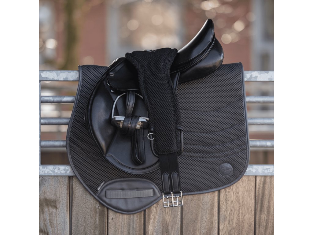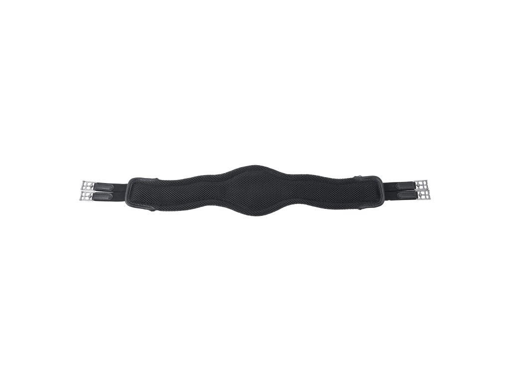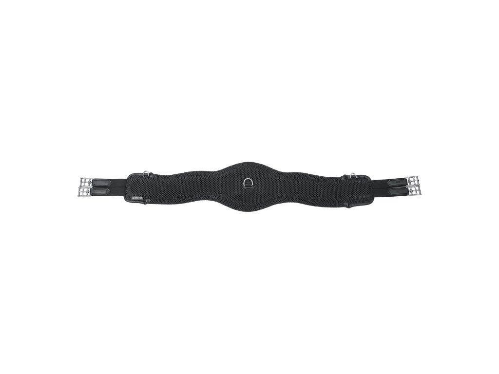 Wysokiej jakości, długi popręg o anatomicznym kształcie wykonany jest z wielowarstwowego, funkcjonalnego materiału siatkowego 3D AIR® EFFECT.Ten funkcjonalny materiał zapewnia doskonały komfort, wysoką trwałość, skuteczną cyrkulację powietrza i stabilność wymiarową nawet przy codziennym użytkowaniu. Anatomicznie ukształtowana konstrukcja z szeroką powierzchnią styku optymalnie rozkłada nacisk. Zwężenie w okolicy łokcia zapewnia koniowi maksymalną swobodę ruchów, jednocześnie zapobiegając otarciom. Zastosowany materiał jest szybkoschnący i bardzo łatwy w utrzymaniu. Popręg jest wyposażony w nierdzewne klamry z rolkami i mocne gumy po obu stronach, które ułatwiają dopinanie. Na środku znajduje się D-ring do mocowania wytoka lub napierśnika, a po bokach znajdują się również dwa dodatkowe D-ringi. Szerokość popręgu: 13–20 cm.
