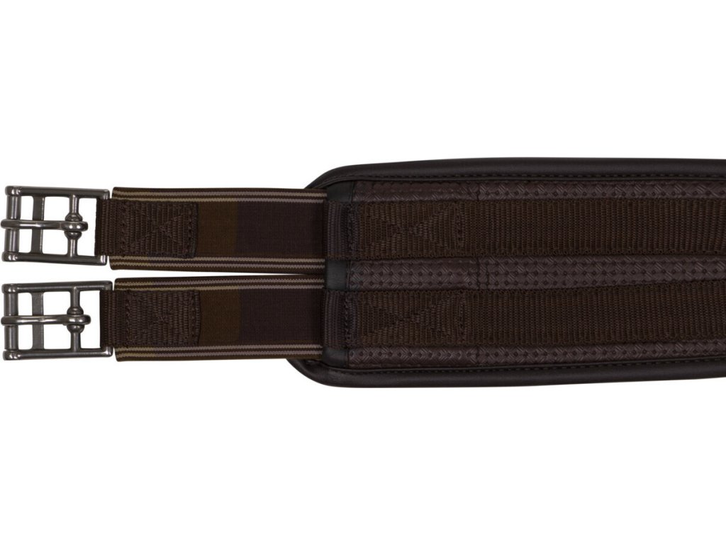 Anatomicznie ukształtowany popręg wykonany z bardzo mocnego i wytrzymałego materiału. Popręg zapewnia maksymalny komfort i swobodę ruchów. Wyposażony w elastyczne taśmy po obu stronach, klamry z rolkami dla łatwego zapinania oraz pierścień na dole do mocowania pomocy treningowych.