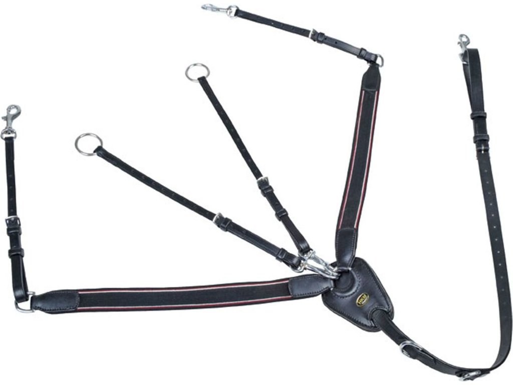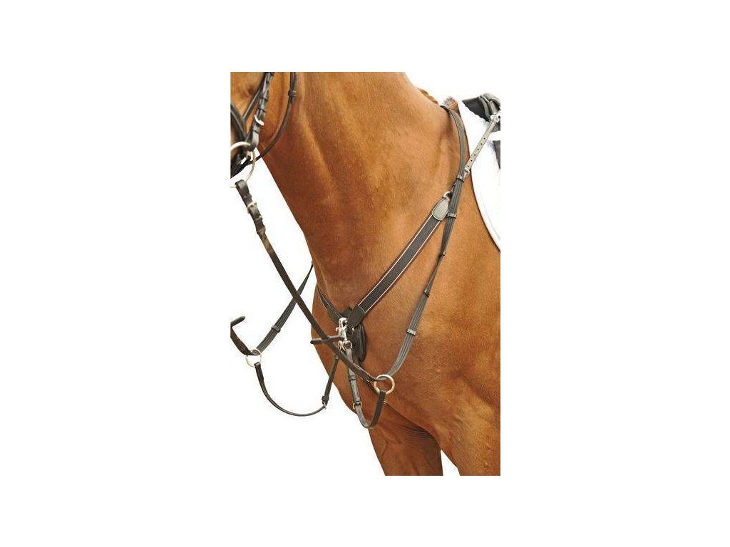 Trzypunktowy napierśnik wykonany z wysokiej jakości skóry. Wyposażony w odpinany widelec wytokowy. Elastyczne paski zapewniają większą swobodę ruchów i komfort dla konia. Wyposażony w wysokiej jakości okucia w srebrnym kolorze. Napierśnik jest miękko wyściełany w punktach nacisku. Dostępne w kolorze czarnym i brązowym. Dostępny w rozmiarach PONY, COB i FULL.
