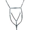 Trzypunktowy napierśnik wykonany z wysokiej jakości skóry. Wyposażony w odpinany widelec wytokowy. Elastyczne paski zapewniają większą swobodę ruchów i komfort dla konia. Okucia są w srebrnym kolorze. Dostępne w kolorze czarnym i brązowym. Dostępny w rozmiarach PONY, COB i FULL.