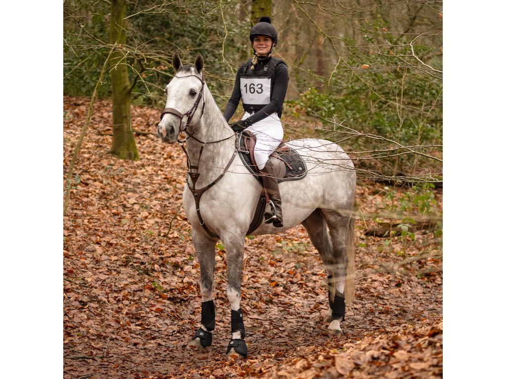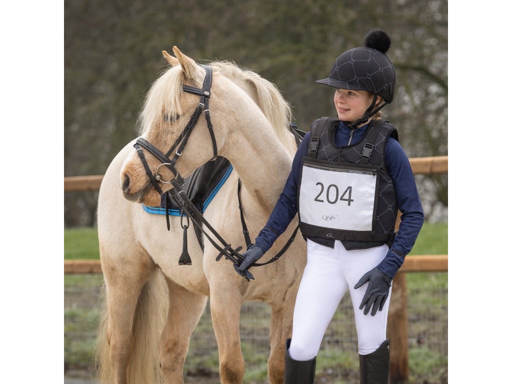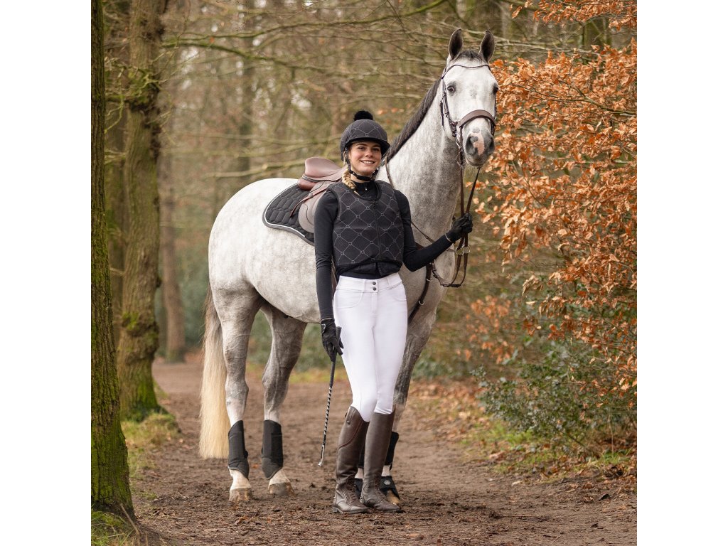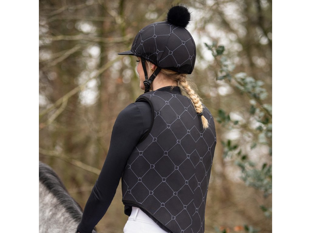 Stylowy pokrowiec na kask z nadrukiem strzemienia i puszystym pomponem nada Twojemu jeździeckiemu strojowi oryginalny wygląd. Praktyczny daszek chroni przed słońcem i nisko zwisającymi gałęziami, a jednocześnie nie przeszkadza w razie upadku. Pokrowiec nadaje się do kasków z daszkiem lub bez, a dzięki uniwersalnemu rozmiarowi pasuje do prawie każdego kasku. Wykonany z elastycznego materiału, który jest łatwy w utrzymaniu. Można prać w pralce w temperaturze 30°C (bez płynu do płukania, nie suszyć w suszarce bębnowej).