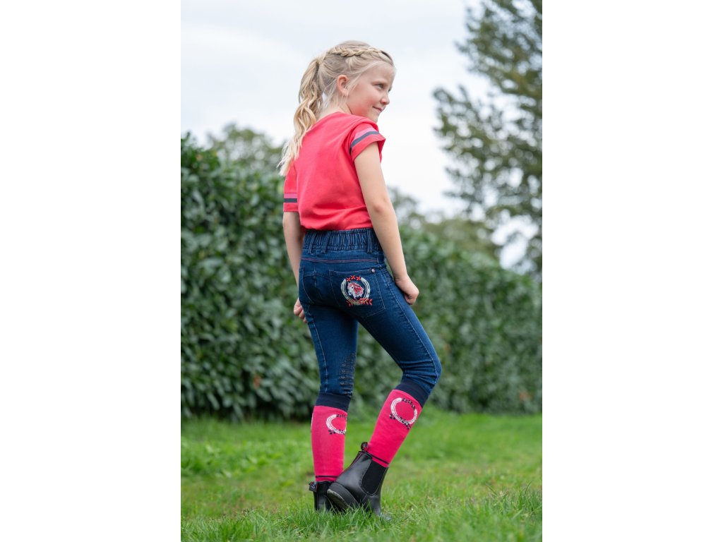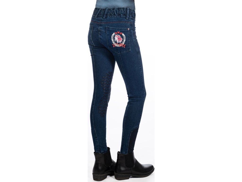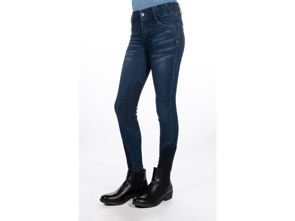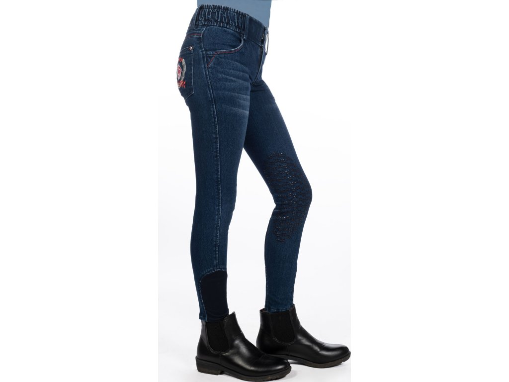 Bryczesy Aymee Denim HKM, z lejem kolanowym, dziecięce, deep blue