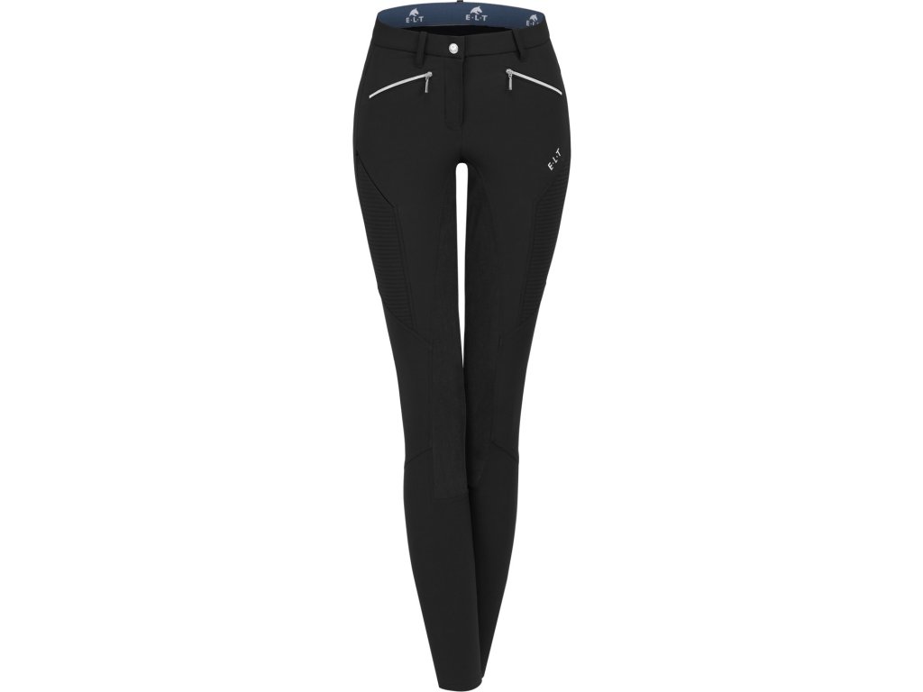 Oddychające bryczesy z pełnym lejem skórzanym. Wykonane z bi-elastycznego materiału, który jest wyjątkowo wygodny i wodoodporny. Wyposażone są w dwie kieszenie na zamek z przodu i głębszą kieszeń na prawej udzie na telefon komórkowy. Bryczesy posiadają również szlufki na pasek i wysoką elastyczną wstawkę na nogawkach dla wygodnego zakładania. Ozdobione są przeszyciami w okolicy ud i logo ELT na lewym udzie. Dostępne w wielu rozmiarach i różnych opcjach kolorystycznych.