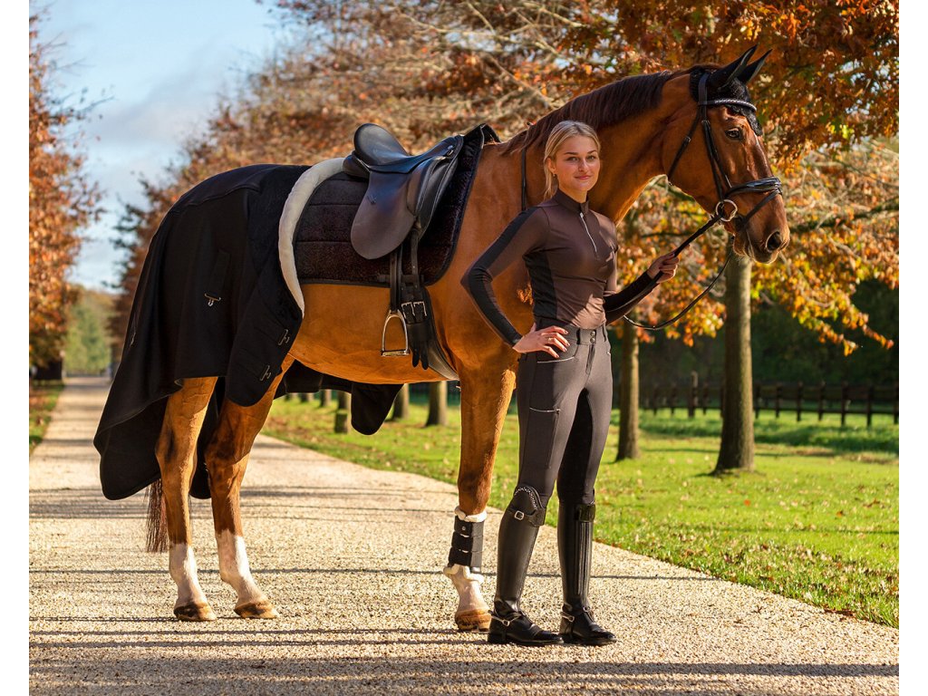 Wysokiej jakości bryczesy damskie wykonane z wysoce oddychającego i elastycznego materiału, który doskonale odprowadza wilgoć. Posiadają wysoki stan i silikonowy antypoślizgowy lej dla maksymalnej przyczepności. Mają szlufki na pasek, praktyczną kieszeń na telefon po prawej stronie i nogawki wykończone lycrą. Kieszenie są ozdobione kontrastową lamówką, która wraz z lejem w kształcie strzemienia nadaje im elegancki wygląd. Bryczesy są dostępne w dwóch wersjach kolorystycznych i idealnie pasują do innych produktów z kolekcji Julin. Część kolekcji jesień/zima 2023/2024.