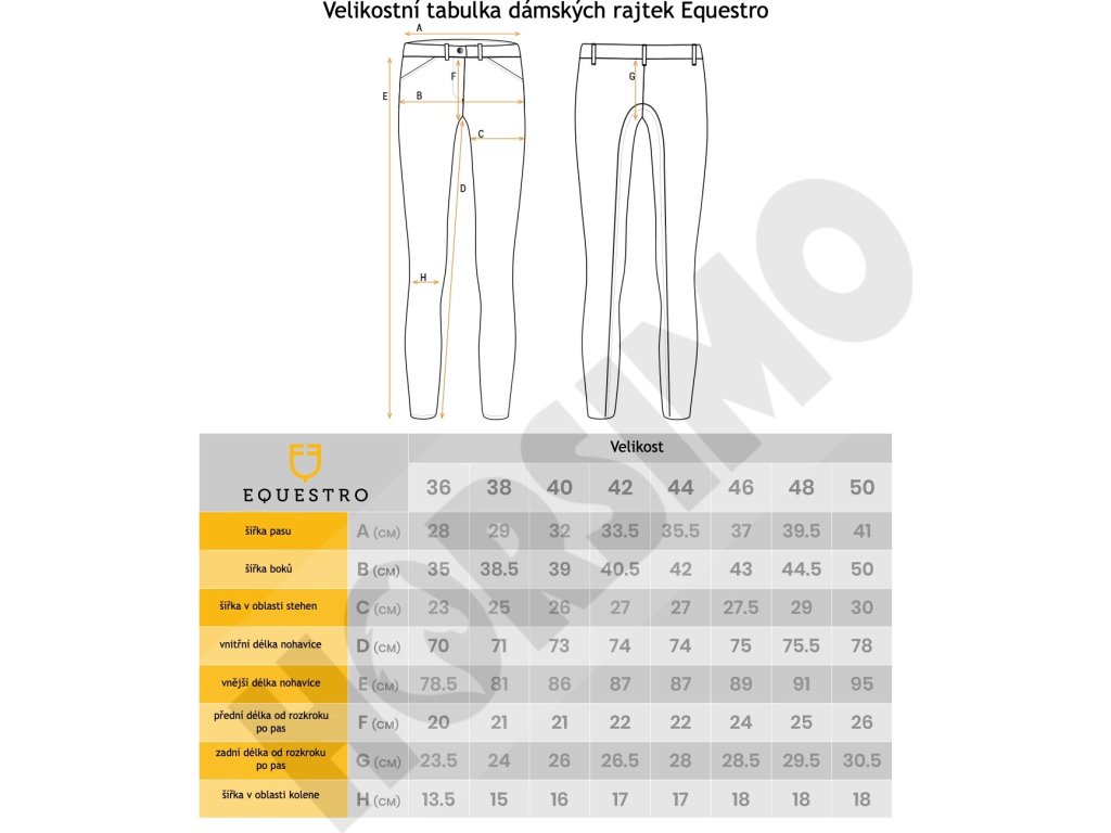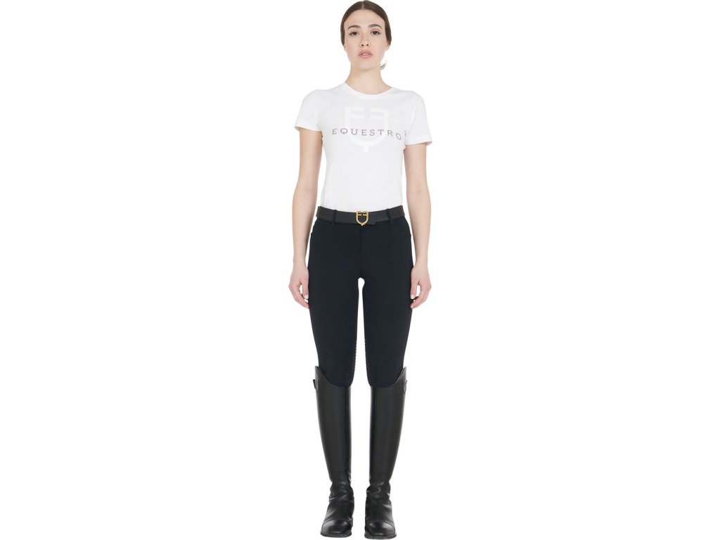 Wysokiej jakości bryczesy, wykonane z elastycznej, oddychającej bawełny. Wyposażone w lej na kolanach po wewnętrznej stronie, który zapewnia stabilność i przyczepność do siodła. Idealnie dopasowują się, gwarantując maksymalną swobodę ruchów. Wyposażone w przednie kieszenie. Zdobione silikonowym logo Equestro. Lycra na kostce zapewnia idealne dopasowanie i najlepszą oddychalność. Bryczesy są bardzo lekkie, odpowiednie na letnie dni. Dostępny w wielu wariantach kolorystycznych.