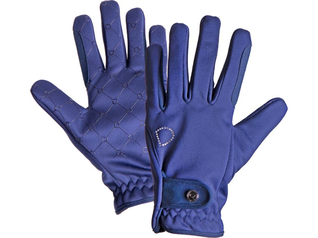Wysokiej jakości rękawice zimowe z miękką polarową wyściółką. Rękawice są wodoodporne, a materiał softshell zapewnia im oddychalność. Wyposażone w antypoślizgowe wykończenie na dłoni w kształcie strzemion. Palec wskazujący jest również podwójnie powlekany, aby zapobiec szybkiemu zużyciu. Ozdobione dżetami na wierzchu dłoni i małym emblematem "Q" na zapięciu. Dostępne również w kolorze czarnym.