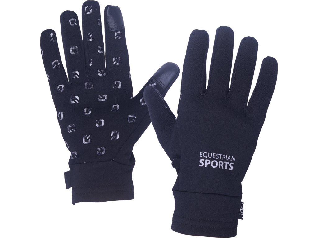 Ciepłe zimowe rękawiczki wyposażone w antypoślizgowy silikonowy chwyt. Kciuk i palec wskazujący posiadają specjalny materiał, który umożliwia korzystanie z telefonu komórkowego. Ozdobione nadrukiem tekstowym "Equestrian Sports".