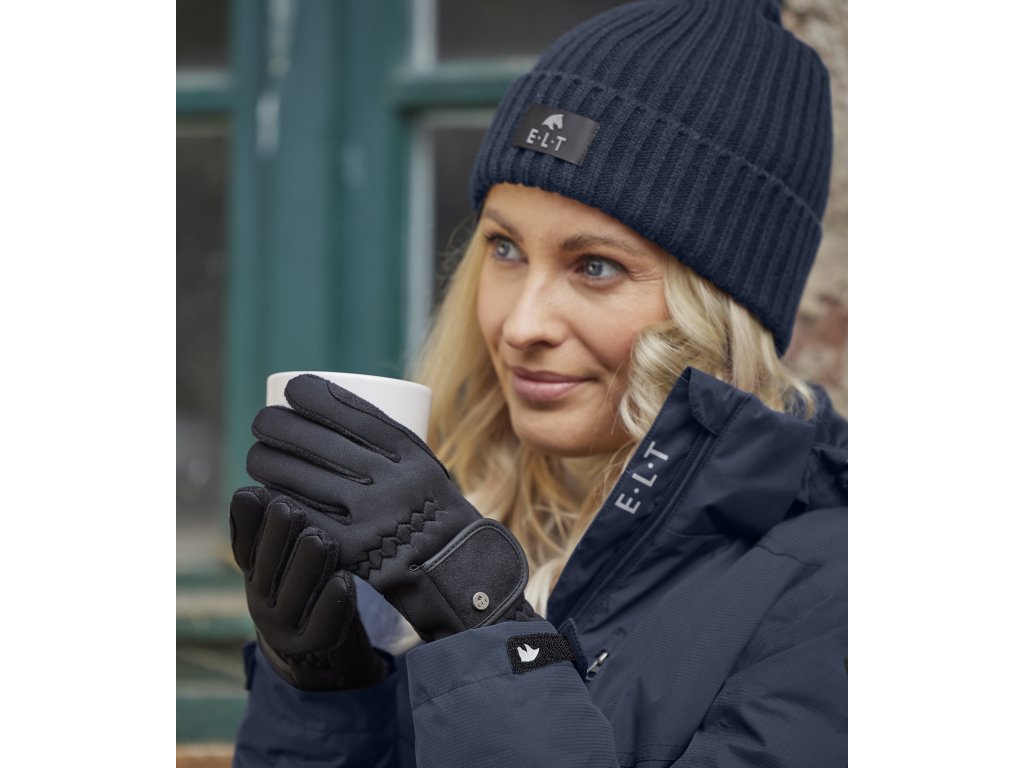 Zimowe rękawiczki jeździeckie, które zapewnią ciepło podczas złej pogody. Zapięcie na rzep z elastycznym paskiem na nadgarstku. Zastosowany materiał jest wiatro i wodo odporny.