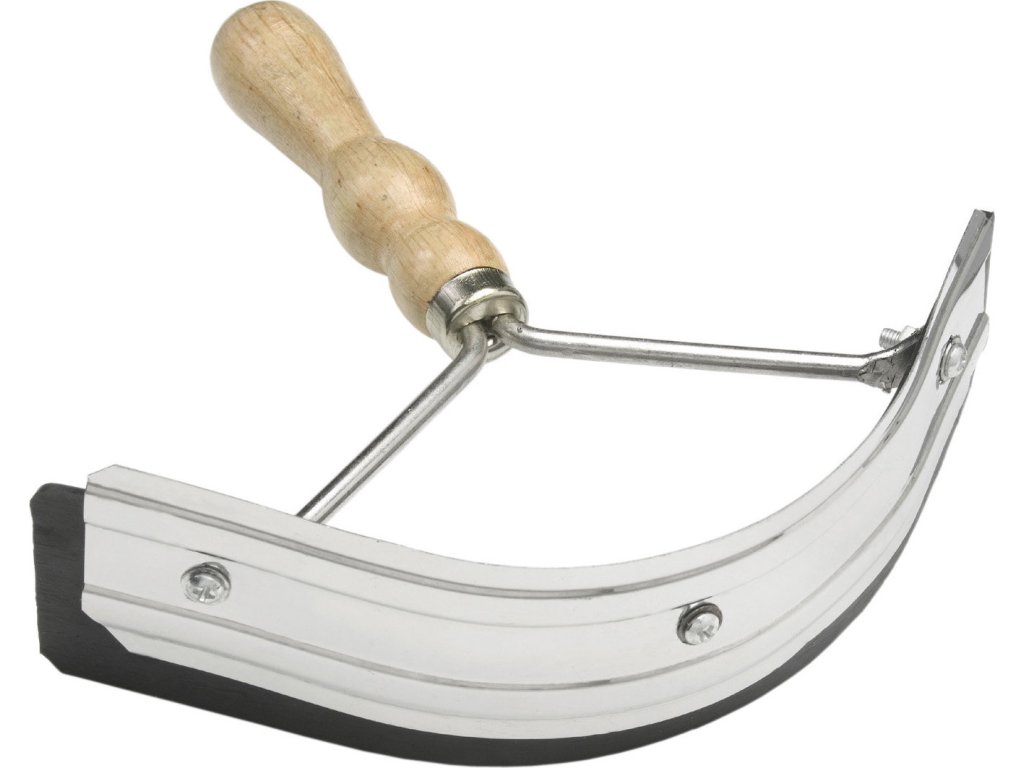 Metalowa ściągaczka do potu z drewnianą rączką. Nadaje się do usuwania wody i potu.