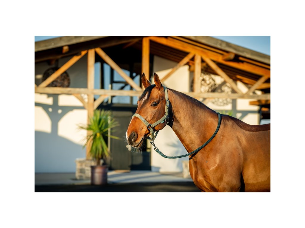 Piękny praktyczny zestaw kantara i uwiązu do codziennego użytku. Kantar wykonany jest z wytrzymałego polipropylenu i posiada miękkie podszycie z polaru na pasku potylicznym i nachrapniku, aby chronić wrażliwe obszary. Wysokiej jakości paski i solidne okucia zapewniają długą żywotność. Dzięki regulowanej klamrze i praktycznemu karabińczykowi przy pasku podgardlanym, jest łatwy w użyciu, na przykład podczas pielęgnacji. Zestaw zawiera również pasujący uwiąz o długości 2 metrów, który wyposażony jest w wygodny karabińczyk i jest przyjemny w dotyku.