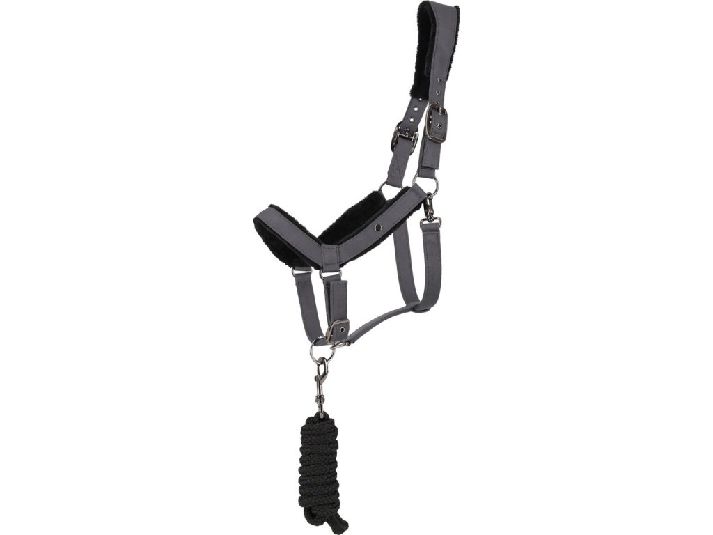 Praktyczny zestaw składający się z anatomicznego kantara i uwiązu do codziennego użytku. Ten praktyczny zestaw zawiera anatomicznie ukształtowany kantar i 2 m uwiąz. Kantar zaprojektowano z naciskiem na maksymalny komfort i delikatność w miejscach wrażliwych, specjalnie wyprofilowany pasek potyliczny i nachrapnik zapewniają równomierne rozłożenie nacisku i minimalizują ryzyko powstawania odcisków. Miękka wyściółka ze sztucznego futra w okolicy nachrapnika i paska potylicznego zapewnia dodatkowy komfort. Pasek potyliczny z wycięciami na uszy lepiej dopasowuje się do ciała konia i nie ogranicza jego ruchów. Dzięki możliwości regulacji po obu stronach paska potylicznego i nachrapnika, kantar jest łatwy w dopasowaniu. Jest ozdobiony subtelną odznaką Q.