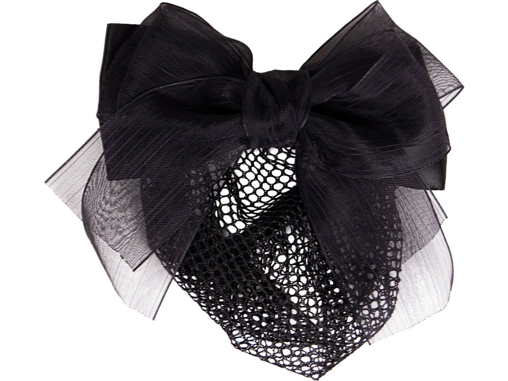 Elegancka siatka do włosów w kształcie podwójnej kokardy. Siatka jest delikatna, a jednocześnie doskonale utrzymuje niesforne włosy w koku. Nadaje się jako elegancki dodatek na zawody. Zapinana na agrafkę. Dostępna w kolorze czarnym i niebieskim.