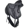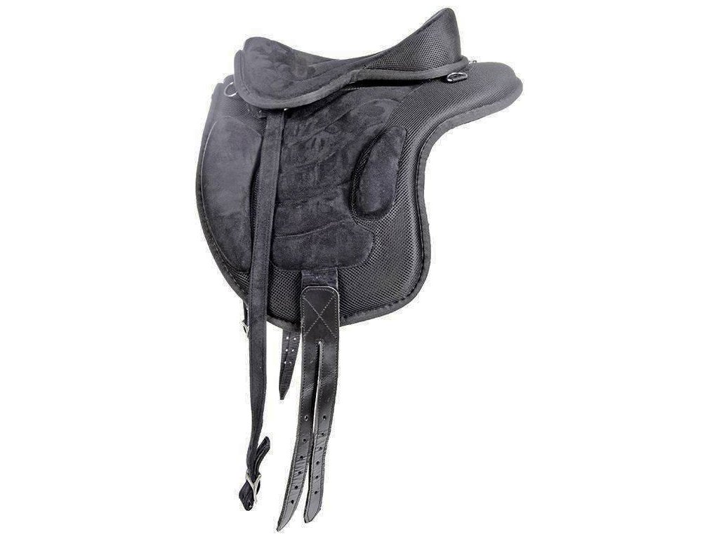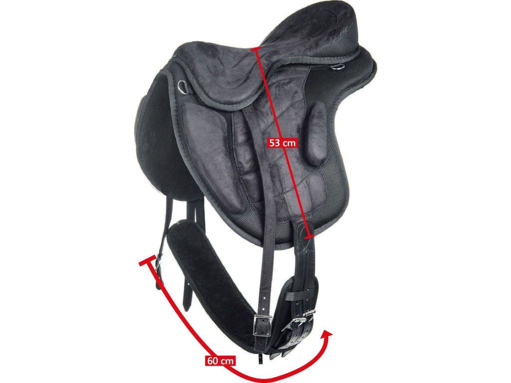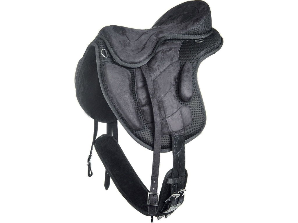 Wysokiej jakości siodło bezterlicowe, dostarczane z popręgiem i puśliskami. Siodło jest bardzo lekkie, wykonane ze skóry syntetycznej. Wyposażone w klocki kolanowe i udowe. Wyposażony w okucia ze stali nierdzewnej. Popręg pokryty jest sztuczną skórą owczą. Dostępne w kolorze czarnym. Dostępne w rozmiarach siedziska 16", 17" i 18".