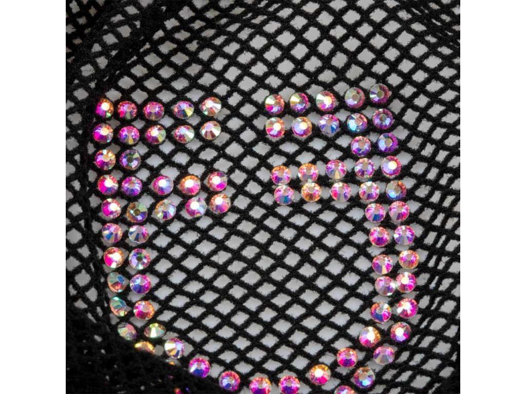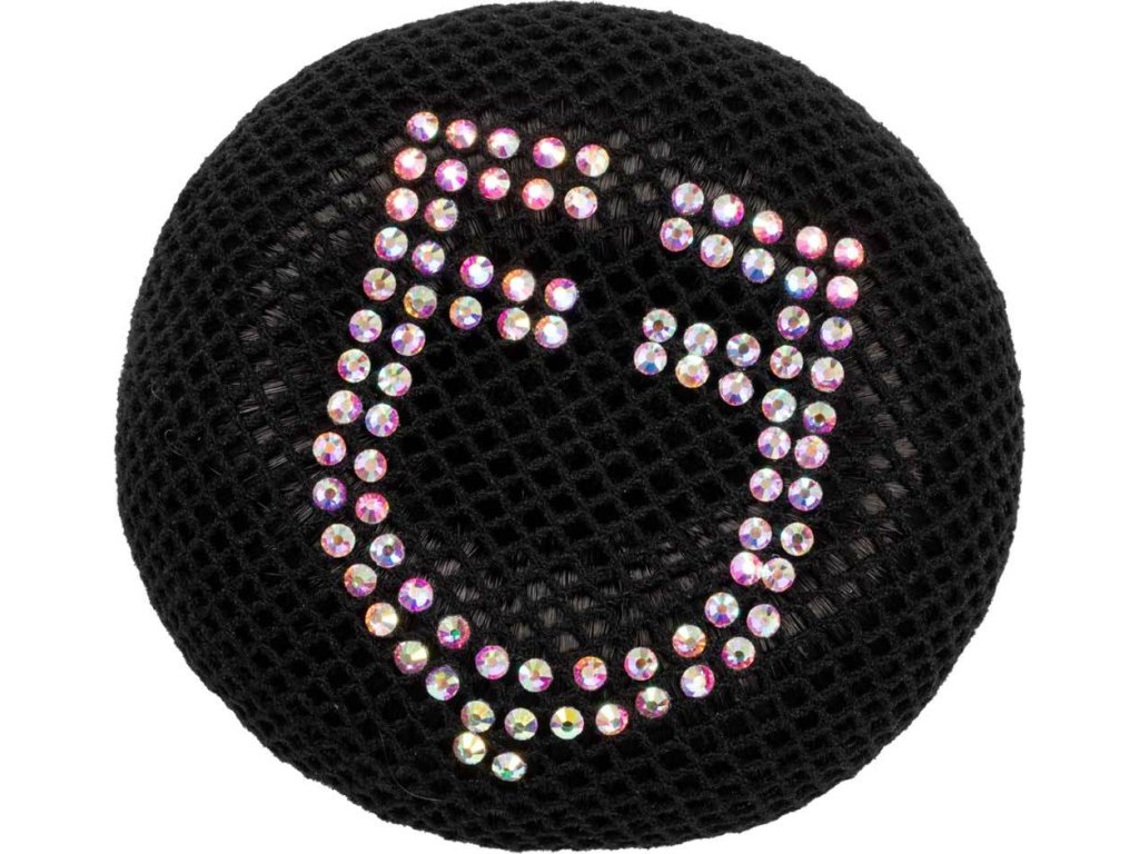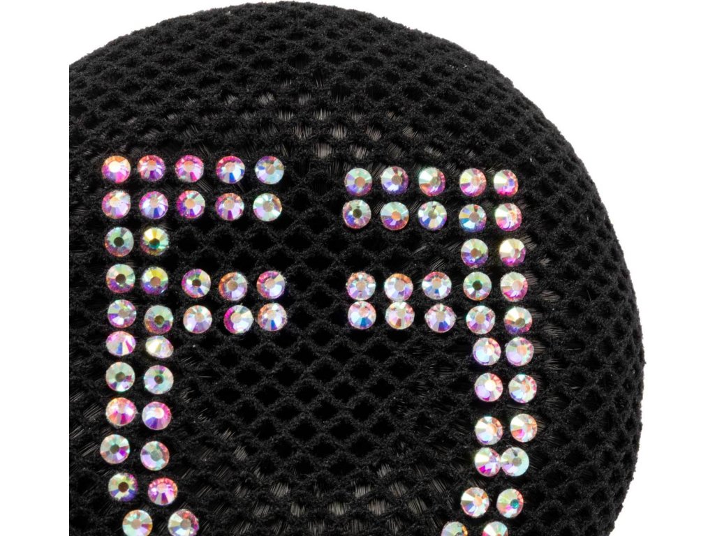 Elegancka siatka do włosów odpowiednia na zawody. Wyposażona w regulowany elastyczny sznurek. Jest ozdobiona logo Equestro z wielokolorowymi cyrkoniami.