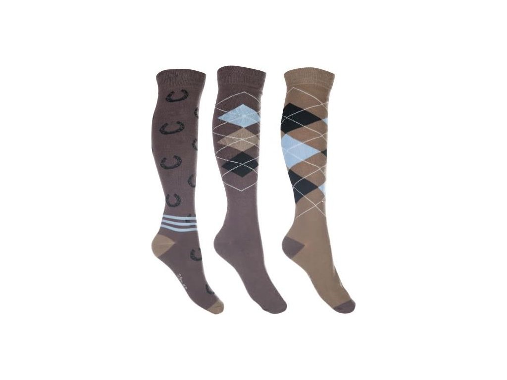 Skarpetki jeździeckie Cardiff HKM, 3 pary, brązowy/beżowy