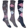 Zestaw 3 par skarpet jeździeckich HKM w różnych kombinacjach kolorów i wzorów. Dzięki wysokiej zawartości bawełny są miękkie i bardzo wygodne. Jednocześnie są oddychające, dzięki czemu zapewniają wysoki komfort noszenia. Można prać w pralce w temperaturze 30°C w programie do tkanin delikatnych. Dostępne w różnych kombinacjach kolorystycznych.
