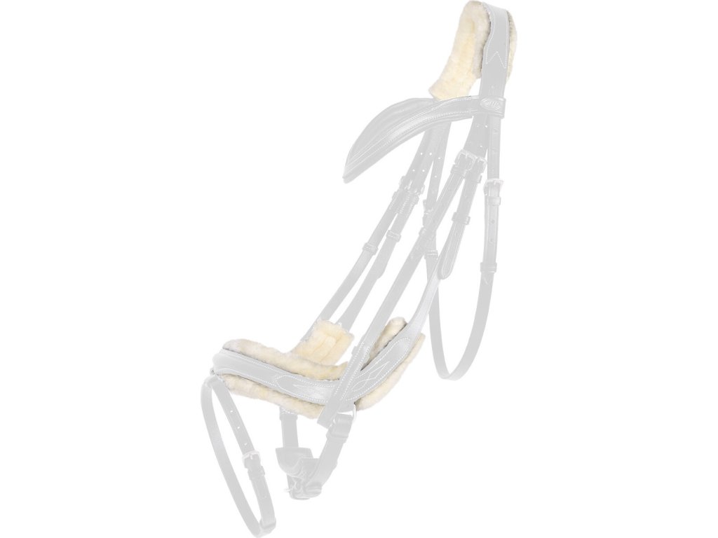 Zestaw dwóch sztucznych skórek jagnięcych do ogłowia Ontario. Łatwe mocowanie za pomocą rzepu. Można prać w pralce.