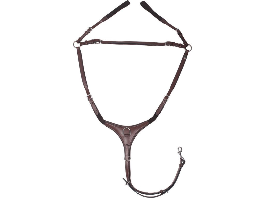 Napiersnik wykonany z wysokiej jakości skóry, który zapobiega przesuwaniu się siodła podczas jazdy. Napiersnik jest regulowany i posiada miękkie żelowe wypełnienie, które zapobiega otarciom. Wszystkie okucia wykonane są z wysokiej jakości stali nierdzewnej. Można go łatwo przymocować do popręgu za pomocą karabińczyka, a także można do niego przymocować wytok. Dostępne w kolorze czarnym i brązowym. Część kolekcji Q-Cross.