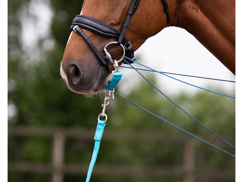 Narzędzie do lonżowania koni. Dzięki temu mostkowi koń może zmieniać kierunek lonżowania bez konieczności zmiany strony mocowania. Długość mostka wynosi 22 cm, a długość mostka z karabińczykami wynosi 32 cm. Dostępny w wielu opcjach kolorystycznych.