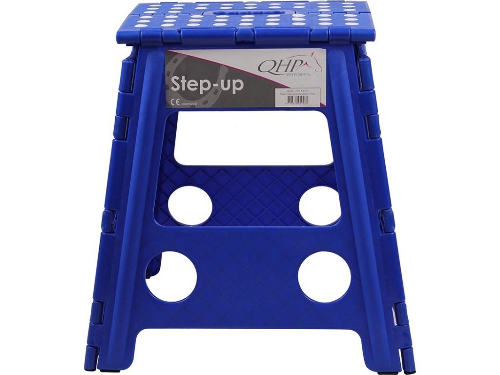 Składany stopień nie tylko do wsiadania na konie, przydatny w każdej stajni i dla każdego jeźdźca. Zewnętrzna powierzchnia wykonana z materiału antypoślizgowego. Wysokość stopnia wynosi 39 cm, 53 cm po złożeniu. Wymiary 25,5 x 21,5 x 39 cm. Dostępne w kilku wersjach kolorystycznych. Może udźwignąć maksymalną wagę 100 kg.