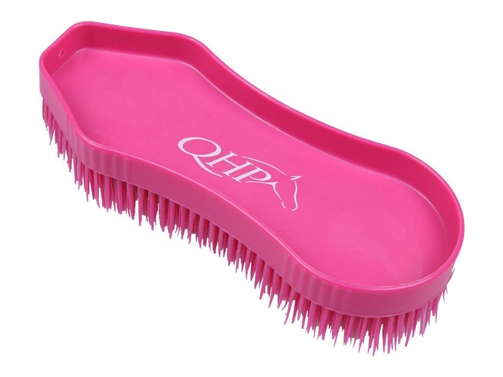 Szczotka z solidnym, plastikowym włosiem. Może być używana do ogólnego czyszczenia, mycia szamponem, czyszczenia kopyt oraz do usuwania sierści np. z czapraka. Dzięki specjalnemu kształtowi szczotka jest bardzo wygodna. Szczotka jest ozdobiona logo QHP i jest dostępna w kilku wariantach kolorystycznych.