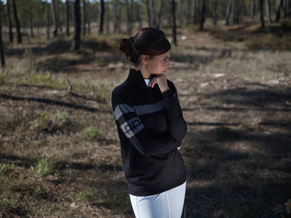 Luksusowy sweter zapinany na zamek. Wykonany w rozmiarach unisex, z naturalnego włókna wełnianego i bawełnianego. Naturalnie oddychający i termoregulujący. Ozdobiony logo na rękawie. Można prać w pralce. (Dla kobiet zalecamy wybór rozmiaru mniejszego niż zwykle nosisz).